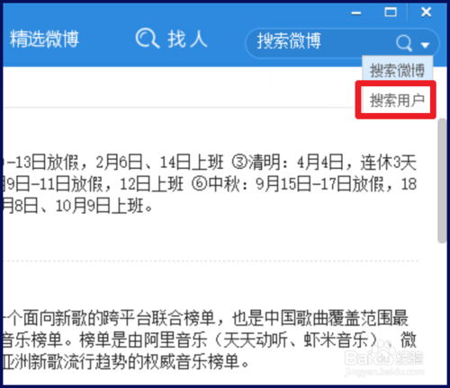 5、如果要搜索具體的用戶,點(diǎn)擊搜索框后的三角形,選擇【搜索用戶】