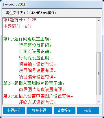 以下是評分后的情況,拉滾動條,可以看到您作答的詳情情況,做對的用綠色表示,錯誤的用紅色表示。