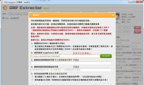 在桌面上創(chuàng)建ImagePacks2文件夾,打開DNF Extractor3.0,點擊一鍵換裝,勾選及設置如圖