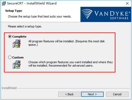 6、在此界面用戶需要選擇安裝類型,包括“Complete(完整版)”和“Custom(自定義)”,一般用戶選擇“Complete”即可,然后點(diǎn)擊下方的“Next”。如果需要重新設(shè)置則點(diǎn)擊“Back”