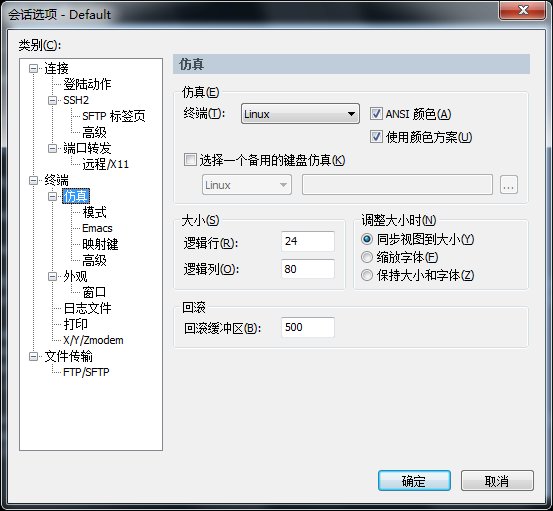 終端選擇“Linux”,勾選“ANSI顏色”和“使用顏色方案”,終端顏色配置請見下面后續(xù)...