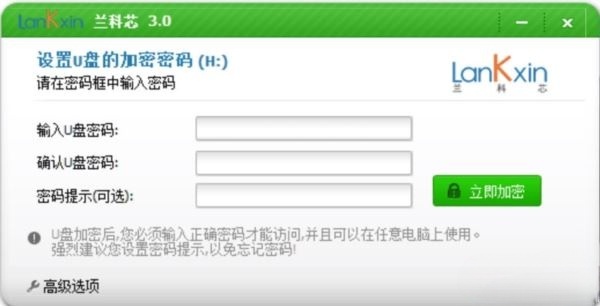 蘭科芯u盤加密工具是一款小巧好用的U盤加密工具,用戶們可以在蘭科芯u盤加密工具快捷的進行U盤的數(shù)據(jù)加密,用戶只有輸入正確的密碼之后才能進行U盤的數(shù)據(jù)訪問,能夠很好的保護用戶的隱私安全,保護U盤中的數(shù)據(jù)防止被盜用,感興趣的用戶快來KK下載體驗吧~