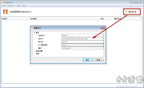 2、接下來(lái)在打開(kāi)的界面中選擇添加站點(diǎn),并選擇Profile->Add,創(chuàng)建新的連接