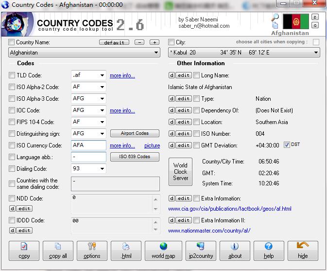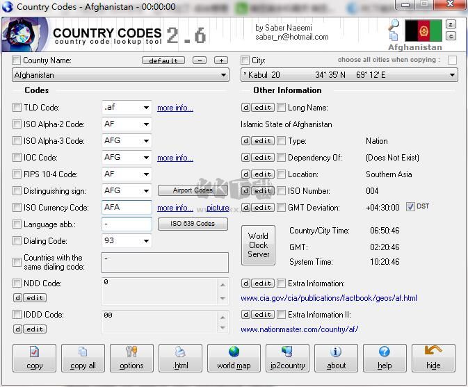 Country Codes軟件提供復(fù)選框,允許您將所有或僅選定的信息復(fù)制到剪貼板。此外,它還為每個啟動瀏覽器的國家提供了一個方便的鏈接,其中包含來自中央情報局世界概況手冊和NationMaster網(wǎng)站的詳細(xì)信息。它還提供了一些選項,例如導(dǎo)出到HTML文件以供打印或其他用途。