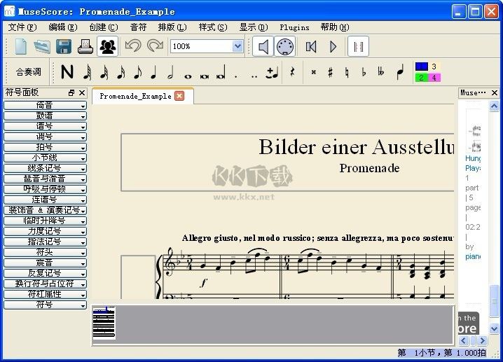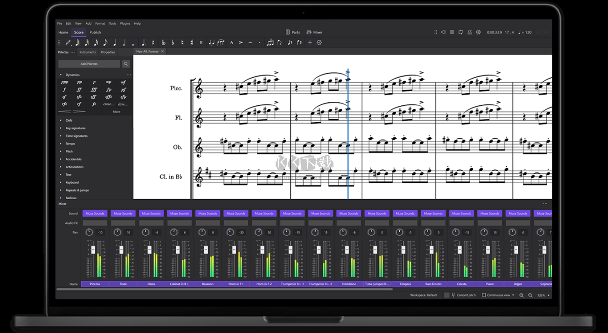 MuseScore音樂(lè)制譜是一款功能強(qiáng)大好用的音樂(lè)制譜軟件,能夠?yàn)橐魳?lè)愛(ài)好者們提供一個(gè)快捷簡(jiǎn)單的制作樂(lè)譜的平臺(tái),你可以輕松在線創(chuàng)作樂(lè)譜,開(kāi)源的特性讓您可以在線輕松的進(jìn)行音樂(lè)的編輯,編寫(xiě)五線譜,是用戶們的音樂(lè)制譜軟件,感興趣的用戶快來(lái)KK下載體驗(yàn)吧~