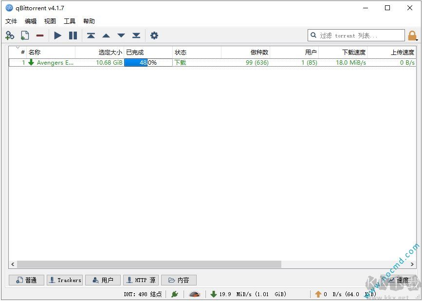 需要說明的是使用 qBitTorrent 下載時,速度不會馬上起來,需要連接到種子之后速度才會慢慢上來,所以不要著急。給它一點點時間,它就會飆到滿速。