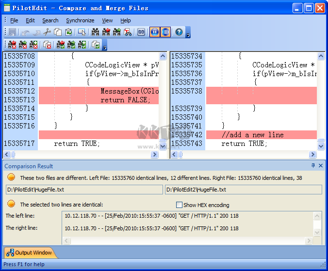 >當(dāng)文件內(nèi)容改變時文件比較窗口自動更新比較結(jié)果;