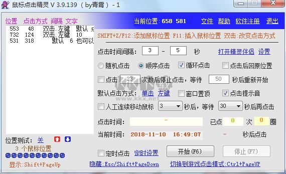 2、任意設(shè)置點(diǎn)擊位置(F12/F11鍵定位鼠標(biāo)點(diǎn)擊位置)