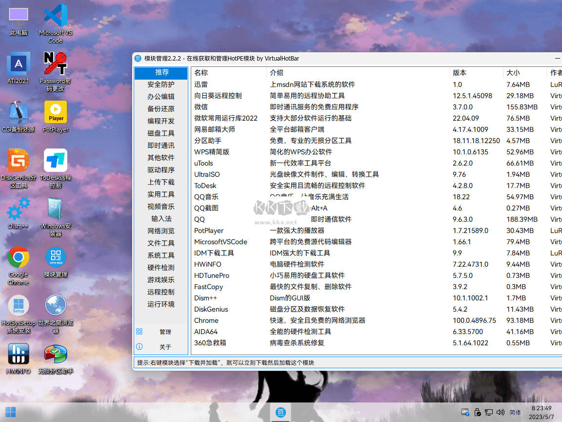 HotPE工具箱是一款簡單純凈好用的兼容性高的PE工具箱,用戶們可以在HotPE工具箱便捷的進(jìn)行操作系統(tǒng)的安裝和維護(hù),在HotPE工具箱你可以以程序安裝包的形式進(jìn)行安裝,不需要復(fù)雜的操作,支持BIOS/Legacy兩種啟動模式,還有驅(qū)動程序帶給大家,給你帶來一個優(yōu)質(zhì)的裝機(jī)和維護(hù)操作的得力助手,感興趣的用戶快來KK下載體驗(yàn)吧~