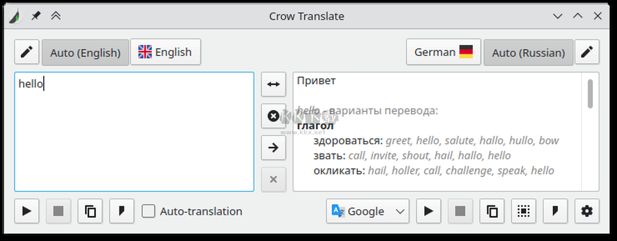 Crow Translate多語言翻譯工具是一款簡單輕量級的翻譯軟件,用戶們可以在Crow Translate多語言翻譯工具進(jìn)行專門的語言學(xué)習(xí)和翻譯,Crow Translate多語言翻譯工具為大家提供了豐富的翻譯引擎,給你提供了準(zhǔn)確的翻譯結(jié)果,你可以在Crow Translate多語言翻譯工具輕松的進(jìn)行翻譯和朗讀文本,感興趣的用戶快來KK下載體驗(yàn)吧~