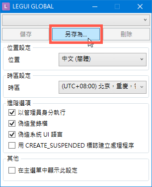 第3步:設(shè)定好之后按「另存爲(wèi)….」按鈕,就可以將此設(shè)定儲存下來,日后可以直接按滑鼠右鍵選取不同語系來執(zhí)行軟體。