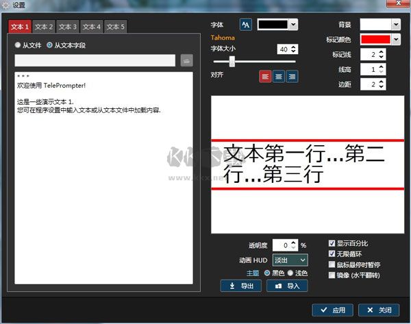 8、可選的眼線標(biāo)記,在文字的中間線顯示半透明的紅色邊框(可從1-5行調(diào)整)。