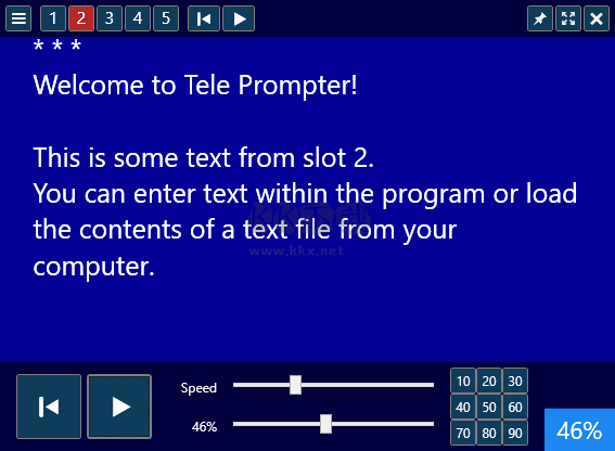 TelePrompter提詞器中文版是一款便捷的電腦桌面提詞器,可以給用戶帶來強(qiáng)大得到輔助演講工具,可以很好的幫助演講者們在這里輕松的進(jìn)行流暢準(zhǔn)確的演講,實時的為演講者們提供文字顯示,還支持調(diào)節(jié)速度,支持用戶們在線跟隨文字的節(jié)奏進(jìn)行閱讀輕松的完成演講,超多的工具都可以免費提供給大家,感興趣的用戶快來KK下載體驗吧~