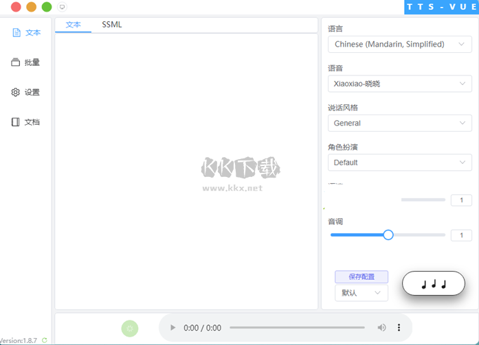 TTS-Vue語(yǔ)音合成助手是一款免費(fèi)為用戶們進(jìn)行語(yǔ)音合成的工具,能夠幫助用戶們快速的實(shí)現(xiàn)文本轉(zhuǎn)語(yǔ)音的功能,TTS-Vue語(yǔ)音合成助手結(jié)合了Electron + Vue + ElementPlus + Vite構(gòu)建的應(yīng)用程序,給用戶們提供了批量的語(yǔ)音轉(zhuǎn)化和語(yǔ)音合成標(biāo)記等功能,讓你可以擁有便捷的聲音試聽(tīng)功能,感興趣的用戶快來(lái)KK下載體驗(yàn)吧~