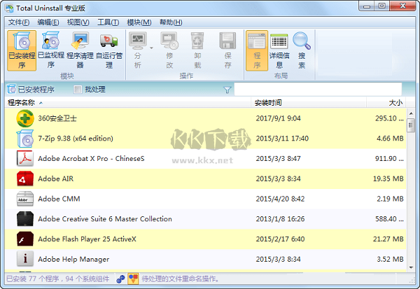 Total uninstall 執(zhí)行的卸載會更加干凈徹底。既不會遺留垃圾文件,又能還原注冊表等處的變動,這樣在卸載時就可以將垃圾文件從系統(tǒng)中刪除干凈,遠離垃圾文件帶來的不良影響。輕松解決由于軟件安裝、卸載所導致的系統(tǒng)不穩(wěn)定、系統(tǒng)變慢等情況。