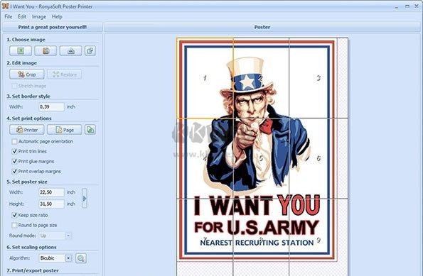 使用RonyaSoft海報(bào)打印機(jī)打印大幅面海報(bào),橫幅與標(biāo)志!此海報(bào)打印軟件允許您使用現(xiàn)有的打印機(jī),從而幫您節(jié)省了自定義打印作業(yè),并且不需要大幅面打印機(jī)或繪圖儀。相反,海報(bào)制作者將自動(dòng)將大圖片分成很多較小的頁(yè)面,并使用您的家用或辦公室打印機(jī)進(jìn)行打印。開始與海報(bào)創(chuàng)作者制作大尺寸照片!
