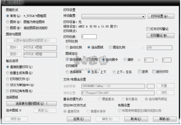 2.支持智能識(shí)別圖紙的打印區(qū)域(圖框)及繪圖比例,無需逐個(gè)設(shè)置圖紙的打印區(qū)域。