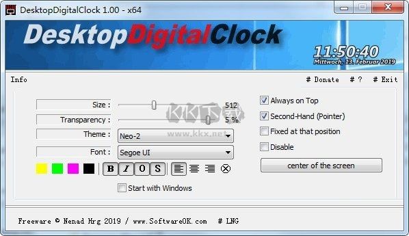 DesktopDigitalClock桌面時鐘是一款小巧好用的數(shù)字桌面時鐘軟件,DesktopDigitalClock桌面時鐘能夠幫助用戶們解決你的桌面的時間問題,DesktopDigitalClock桌面時鐘擁有超多的風格提供給用戶們,強大的功能提供給你便捷的進行時鐘的定制使用,你可以輕松的放在屏幕上的任何位置,便捷的進行時間的管理,感興趣的用戶快來KK下載體驗吧~