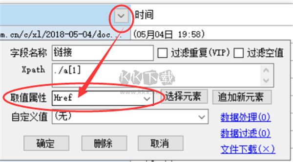 如果我們要采集二級(jí)頁(yè)面,如內(nèi)容頁(yè),或采集更深一級(jí)的頁(yè)面,三級(jí)、四級(jí)等,在當(dāng)前頁(yè)字段列表中,必須包含有一個(gè)提取鏈接地址的字段,也就是提取屬性為Href的字段,如圖