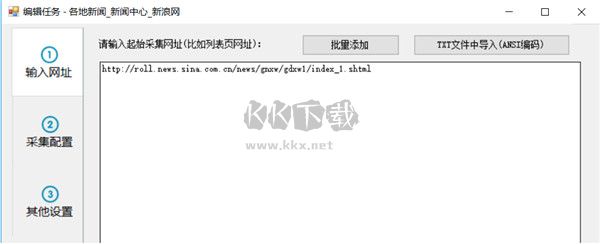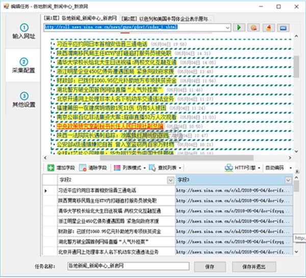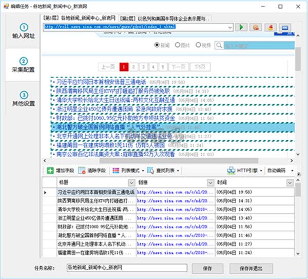 如果你要在一個(gè)任務(wù)中同時(shí)采集國(guó)內(nèi)新聞里的其他子欄目,也可以把另兩個(gè)子欄目列表地址復(fù)制進(jìn)來(lái),因?yàn)檫@些子欄目列表格式都是相似的,但為了便于導(dǎo)出或發(fā)布分類數(shù)據(jù),一般不建議多個(gè)欄目?jī)?nèi)容混合在一起