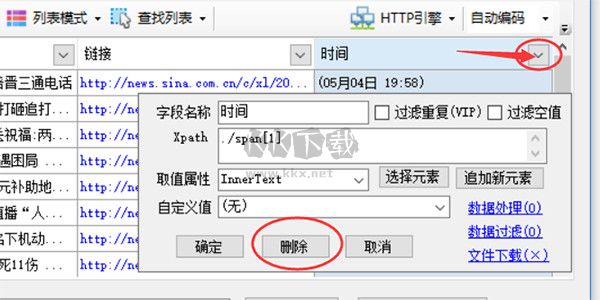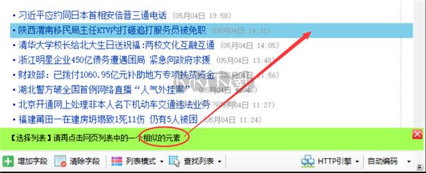 如果自動(dòng)分析出的高亮列表也不是我們要采集的列表,那么我們就手動(dòng)選取列表,要是想取消高亮顯示的列表框,可以點(diǎn)擊 查找列表,列表XPATH,把里面的xpath清空后確定即可
