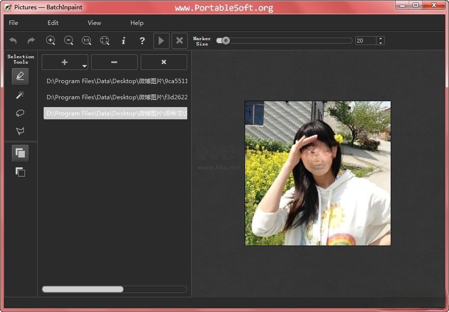BatchInpaint Portable水印處理工具是一款便捷的給用戶們提供的圖片和文件夾的管理,支持用戶們編輯的在線批量的進行圖片水印的使用,你可以輕松底色進行水印的去處,快速有效的將圖片中的水印和瑕疵等等去除幫助你提高圖片的清晰圖和質(zhì)量,感興趣的用戶快來KK下載體驗吧~