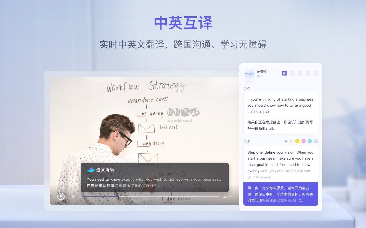 解放雙手,專注聆聽,實時語音轉(zhuǎn)文字,多語言同步翻譯,1 小時音視頻 5 分鐘轉(zhuǎn)寫,精準(zhǔn)區(qū)分發(fā)言人