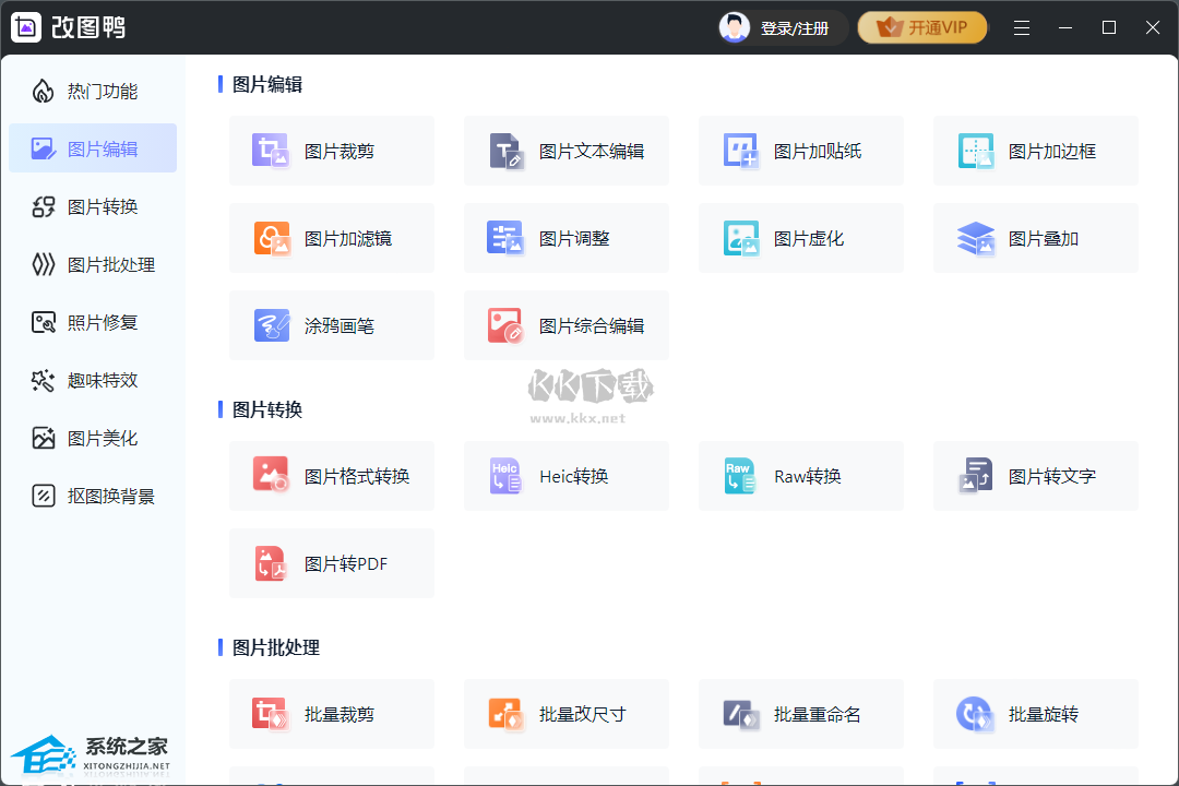 2、擁有一套完整的圖像處理工具,可以滿足圖像編輯、轉(zhuǎn)換、批量處理、修復(fù)、美化的需求;