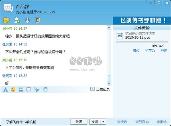 1、局域網(wǎng)通信,飛鴿傳書能夠通過WiFi網(wǎng)絡,即時溝通和高速文件傳輸