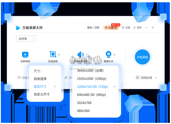 多模式錄制: 支持全屏錄制、區(qū)域錄制、攝像頭錄制等,幫您記錄精彩時(shí)刻