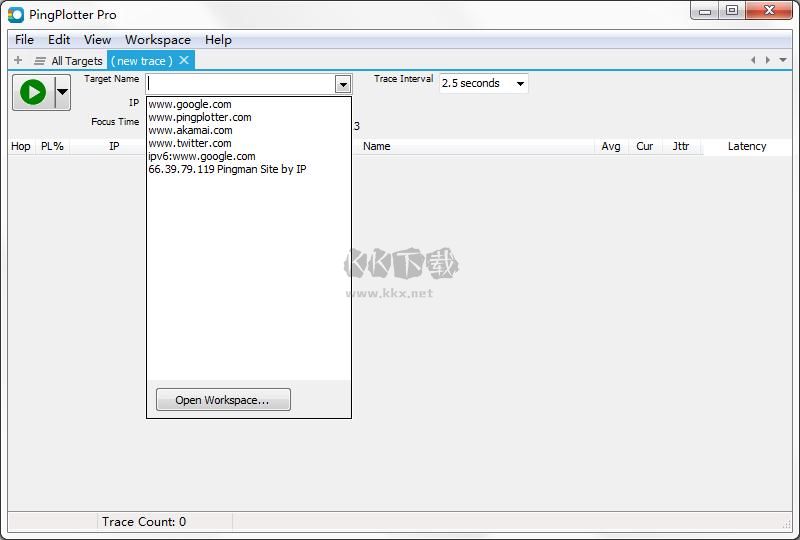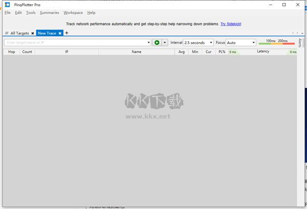 PingPlotter Pro路由跟蹤器是一款功能強(qiáng)大好用的幫助用戶們進(jìn)行路由跟蹤的軟件,你可以輕松的處理各種網(wǎng)絡(luò)的問題,PingPlotter Pro路由跟蹤器結(jié)合了多種數(shù)據(jù)和圖像的表達(dá)讓你可以輕松的檢測分析路由的狀態(tài),高效的將網(wǎng)絡(luò)數(shù)據(jù)可視化的進(jìn)行查看,讓你輕松的排出故障解決問題,感興趣的用戶快來KK下載體驗吧~