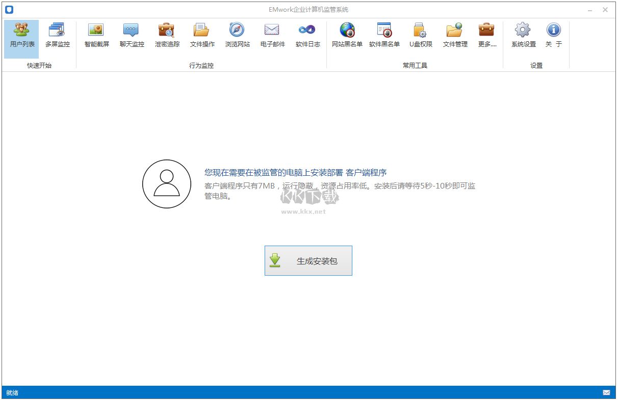 EMwork企業(yè)計算機監(jiān)管系統(tǒng)是一款為企業(yè)打造的便捷的員工上網(wǎng)行為監(jiān)控軟件,EMwork企業(yè)計算機監(jiān)管系統(tǒng)可以便捷輕松的掌握員工上網(wǎng)的時間、網(wǎng)絡(luò)黑名單的管理等等,超多便捷的網(wǎng)絡(luò)監(jiān)控功能提供給用戶們,讓你可以更好的管理員工,減少摸魚時間,提高工作效率,管理一切的上網(wǎng)行為,還能查看聊天記錄等等,感興趣的用戶快來KK下載體驗吧~