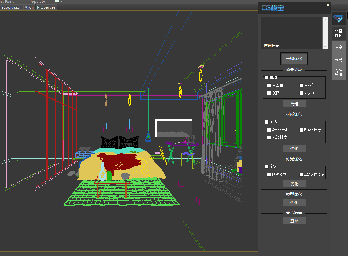 針對場景中空圖層、空物體、緩存、丟失插件進(jìn)行清理操作。