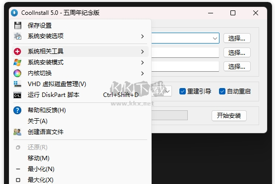 CoolInstall綠色版是一款便捷的幫助用戶(hù)們進(jìn)行快捷的安裝操作系統(tǒng)的工具,支持用戶(hù)們進(jìn)行多種操作系統(tǒng)的安全,讓你可以便捷的額進(jìn)行自動(dòng)化的安裝,支持用戶(hù)們進(jìn)行數(shù)據(jù)的備份還有還原等等,你都可以輕松的進(jìn)行安裝、升級(jí)和遷移操作系統(tǒng),智能化的幫助你進(jìn)行系統(tǒng)的優(yōu)化,讓你的系統(tǒng)更加的穩(wěn)定,感興趣的用戶(hù)快來(lái)KK下載體驗(yàn)吧~