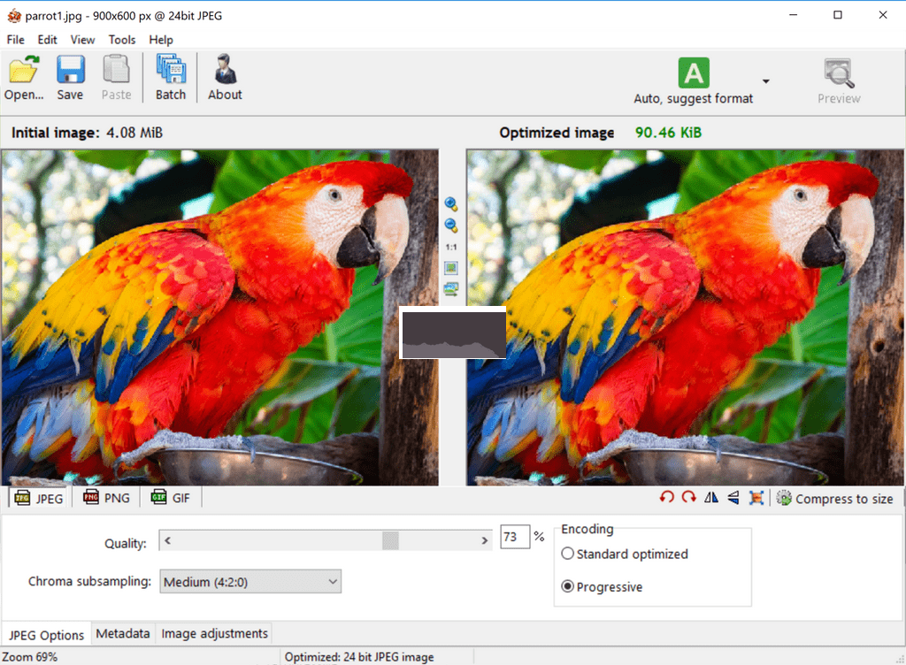 就地比較功能(可選地,在優(yōu)化圖像上顯示原始圖像以注意小像素改變)