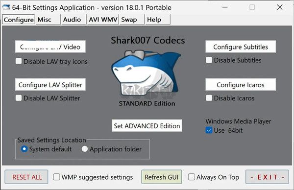 對于Windows10/8.1/7標準編解碼器可用版本5.2.5標準版本只包含字幕LAV濾鏡和字幕。