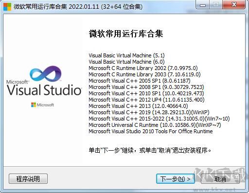 注:該運行庫合集包會自動檢測電腦中未安裝的運行庫,智能安裝。