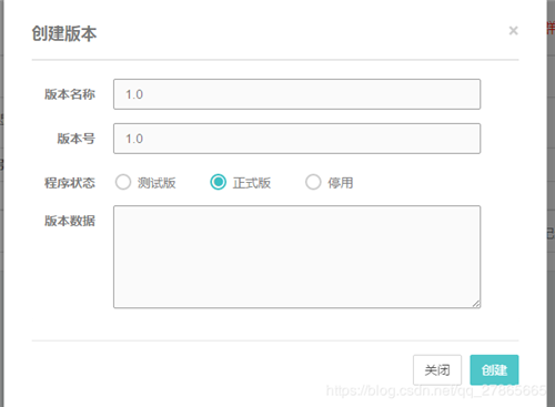 點擊創(chuàng)建版本,版本號是用于停止軟件使用的,現(xiàn)在我們的版本號如下圖是1.0那么我們也創(chuàng)建一個1.0的版本號
