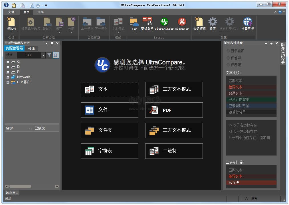 6、FTP 支持:如果您擁有一臺 FTP 服務(wù)器您可以使用軟件直接比較 FTP 上的文件之間的不同或是與本地文件的不同。會話功能:如果您經(jīng)常要比較某些文件的區(qū)別,例如輸出日志或調(diào)試記錄,您可以使用 UC 的會話功能,根據(jù)實際情況建立相關(guān)的會話,方便您多次使用。