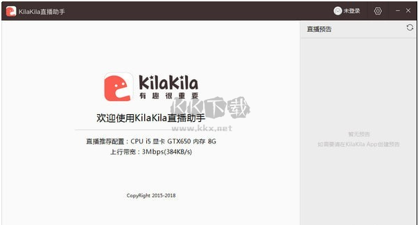 啟動(dòng)KilaKila直播助手后,在右上角登錄,即可開(kāi)始直播。