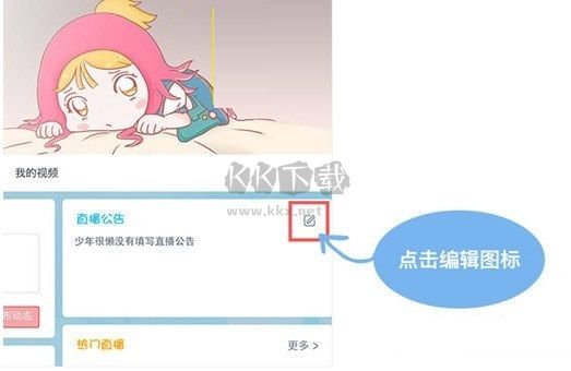PC端登錄官網(wǎng) – 進入自己的個人中心 – 我的空間 – 右側(cè)直播公告小窗 - 點擊編輯圖標修改。