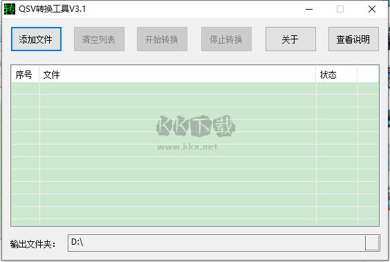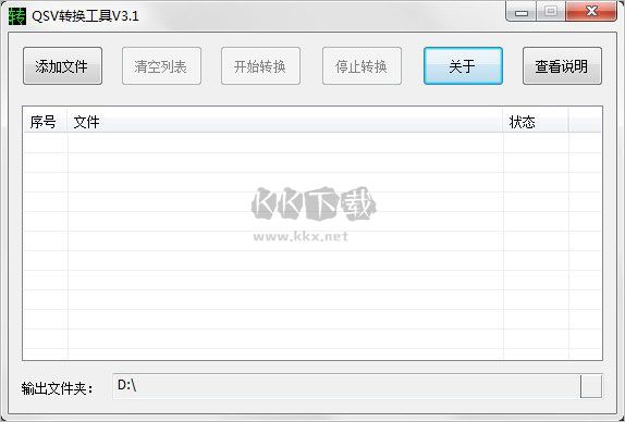 1、打開QSV視頻格式轉(zhuǎn)換器,操作很簡單,選擇【添加文件】將事先準備好qsv文件載入,再設(shè)置“輸出文件夾”,然后點擊【開始轉(zhuǎn)換】。