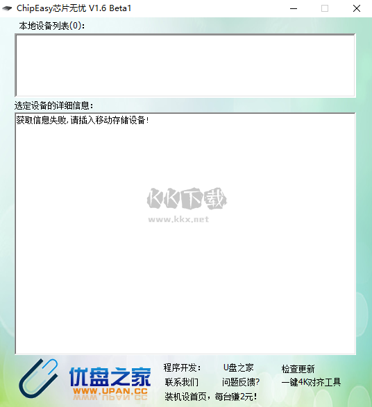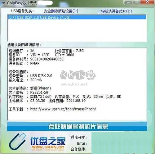 1、插入u盤(pán),放心運(yùn)行ChipEasy芯片,它會(huì)自動(dòng)獲取u盤(pán)的相關(guān)信息;