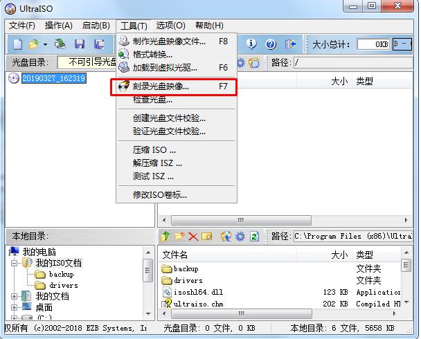 1、打開一個ISO映像文件,然后點擊【工具】——》【刻錄光盤映像】