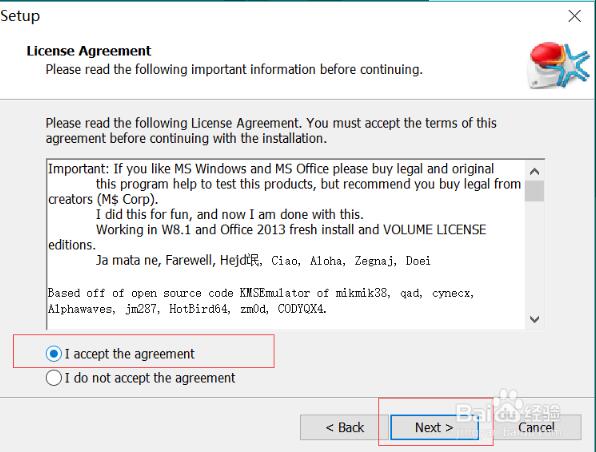 3、進入“License Agreement”對話框中,選擇“I accept the agreement”,然后點擊“Next”。