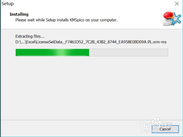 6、KMSpico會自動安裝,稍等片刻,如果要停止安裝點擊頁面中的"cancel”按鈕。