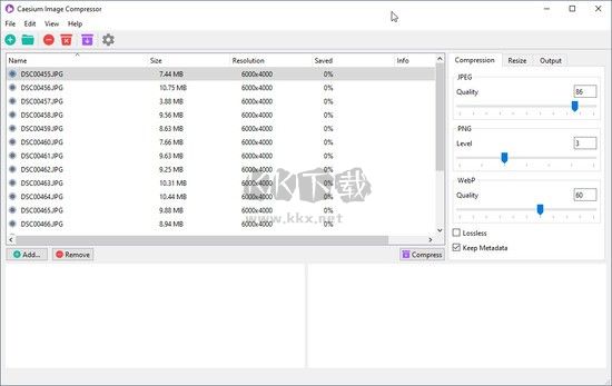 Caesium圖片壓縮工具免費版是一款非常好用的圖片批量處理工具,用戶們可以在Caesium圖片壓縮工具免費版無損的進行圖像的壓縮,不會造成失幀的情況。支持用戶們在Caesium圖片壓縮工具免費版便捷的進行多種格式的圖像的壓縮,還能讓你在Caesium圖片壓縮工具免費版批量的進行圖片的重命名,給用戶們帶來很好的處理圖像的功能,感興趣的用戶快來KK下載體驗吧~