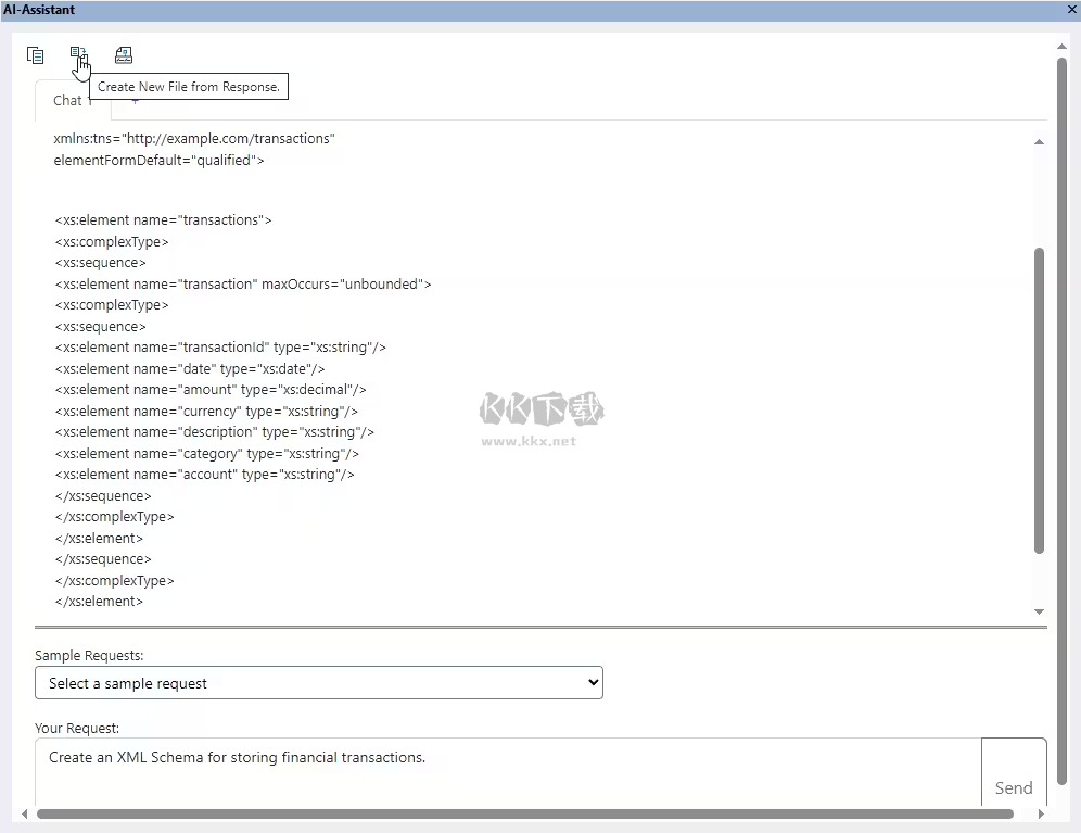ChatGPT 直接在 XMLSpy 中自動(dòng)生成與您的提示相對(duì)應(yīng)的代碼,這可以大大加快開(kāi)發(fā)過(guò)程。使用 AI Assistant 工具欄,您可以將響應(yīng)復(fù)制到剪貼板、創(chuàng)建包含響應(yīng)的新文檔,或在 XMLSpy XPath/XQuery 窗口中打開(kāi)它。