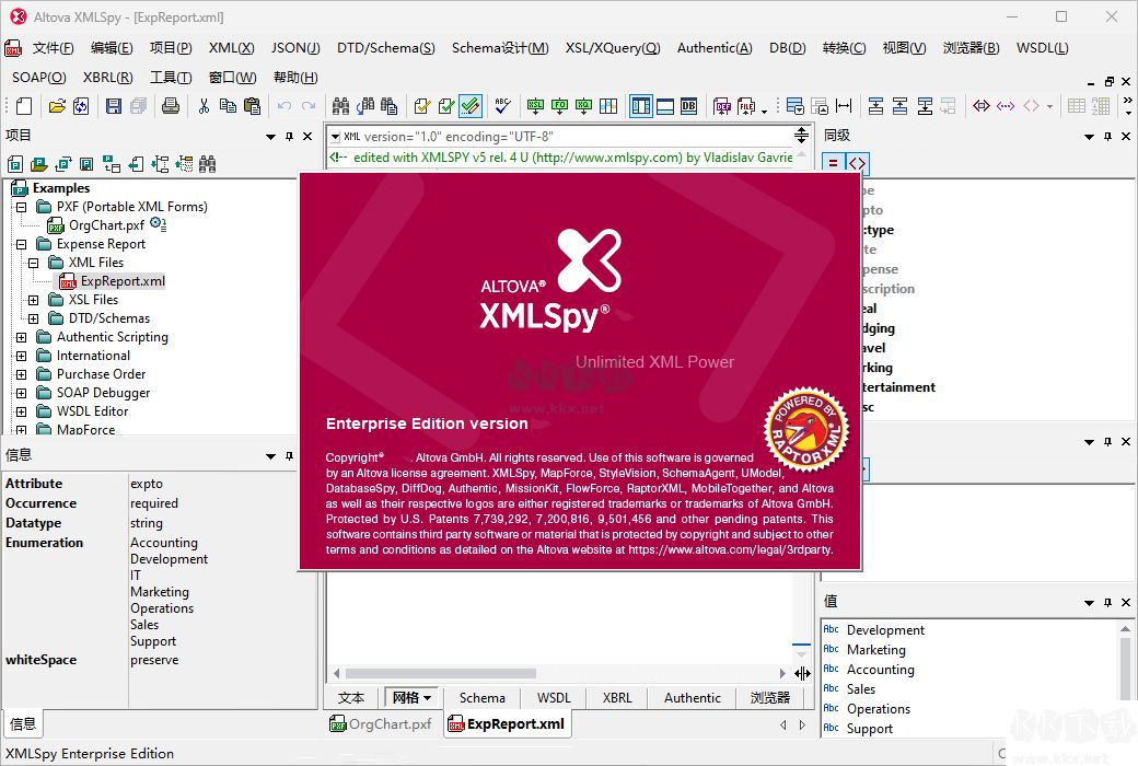 XMLSpy(XML編輯器)是一款功能強(qiáng)大好用的XML編輯器,用戶(hù)們可以在這里便捷的進(jìn)行XML文檔的編輯,這里給用戶(hù)們帶來(lái)了便捷的樣式表的設(shè)計(jì)工具,不管是對(duì)專(zhuān)業(yè)的開(kāi)發(fā)人員還是普通的用戶(hù)們來(lái)說(shuō)都是一個(gè)很不錯(cuò)的開(kāi)發(fā)環(huán)境,給你帶來(lái)便捷的數(shù)據(jù)庫(kù)操作,便捷的進(jìn)行數(shù)據(jù)的管理,感興趣的用戶(hù)快來(lái)KK下載體驗(yàn)吧~