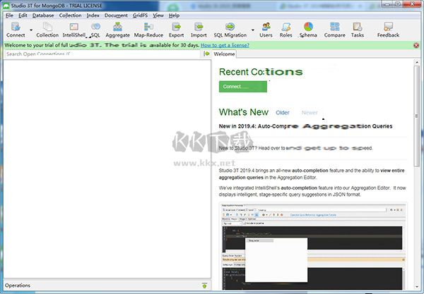 Studio 3T數(shù)據(jù)可視化管理工具是一款功能強(qiáng)大的全面好供用的數(shù)據(jù)管理工具,用戶們可以在這里便捷的進(jìn)行數(shù)據(jù)的查詢、更新和分析使用,這里給你帶來(lái)了強(qiáng)大的查詢編輯器,支持代碼的高亮和語(yǔ)法的編輯檢查等功能,給用戶們極大的提高了編程效率,讓你可以可視化的進(jìn)行數(shù)據(jù)的管理,感興趣的用戶快來(lái)KK下載體驗(yàn)吧~